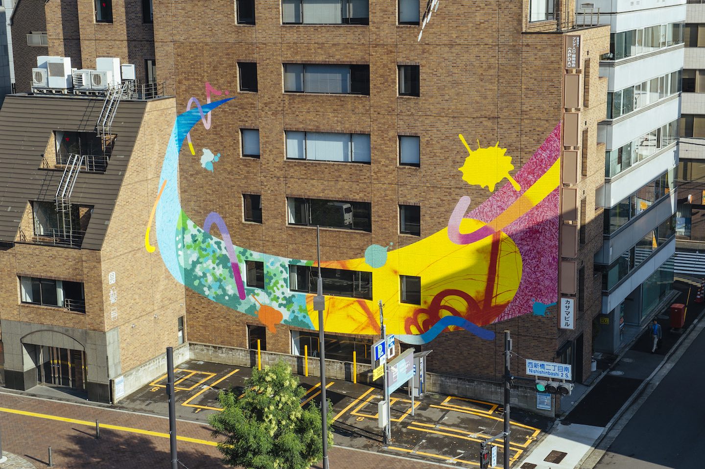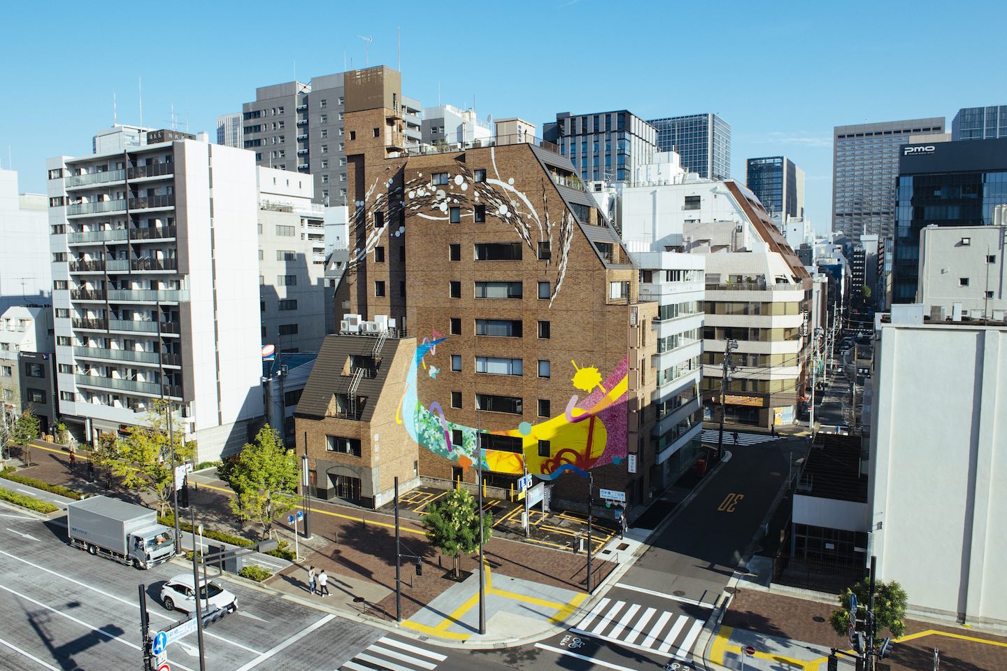 革新的な再開発計画がスタートした新橋〜虎ノ門エリア、通称新虎通りのビル壁面をダイナミックに用いてMURAL(壁画)を描くプロジェクトです。